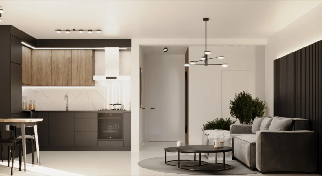 Po akceptacji konkretnego układu funkcjonalnego następuje proces tworzenia fotorealistycznych wizualizacji. W cenie projektu uwzględnia się 2 opcje poprawek do wizualizacji (bez znacznych zmian w układzie funkcjonalnym).
